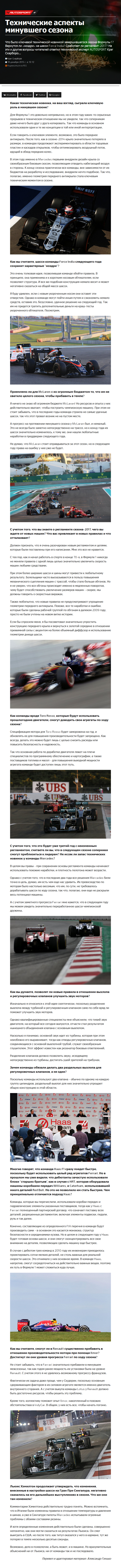 Что было ключевой технической новинкой завершившегося сезона Формулы 1? Вернутся ли «ноздри» на шасси Force India? Сработает ли регламент-2017? На эти и другие вопросы читателей ответил технический эксперт AUTOSPORT Крэг Скарборо…