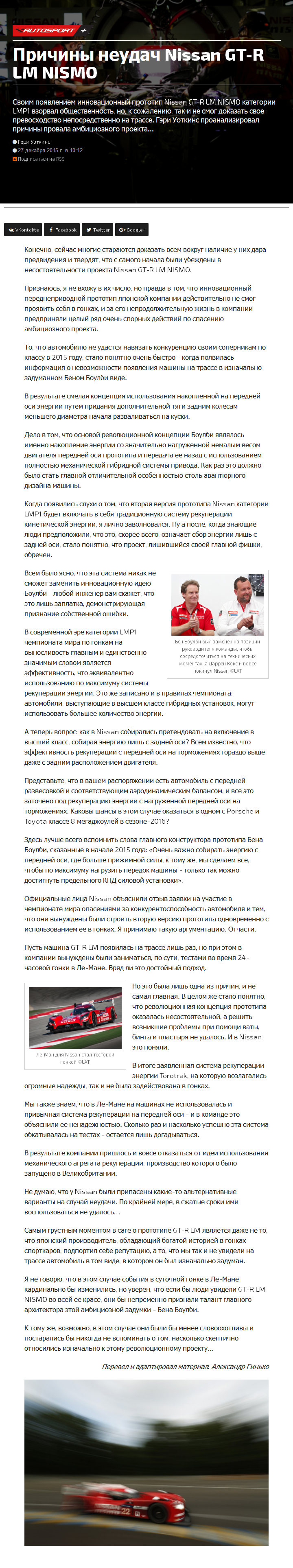 Своим появлением инновационный прототип Nissan GT-R LM NISMO категории LMP1 взорвал общественность, но, к сожалению, так и не смог доказать свое превосходство непосредственно на трассе. Гэри Уоткинс проанализировал причины провала амбициозного проекта…