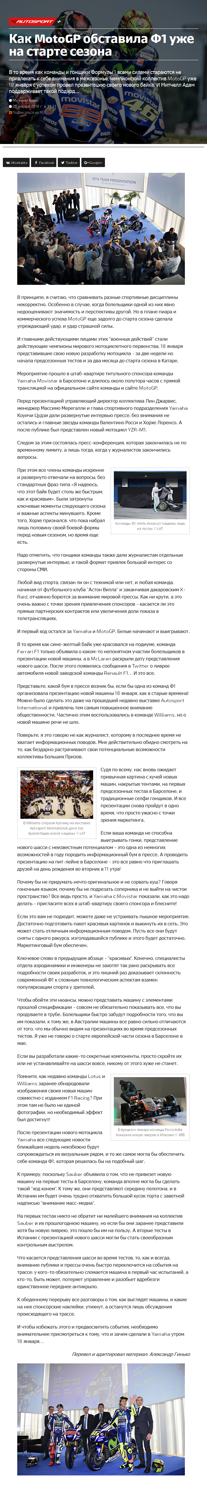В то время как команды и гонщики Формулы 1 всеми силами стараются не привлекать к себе внимания в межсезонье, чемпионский коллектив MotoGP уже 18 января с успехом провел презентацию своего нового байка. И Митчелл Адам поддерживает такой подход…