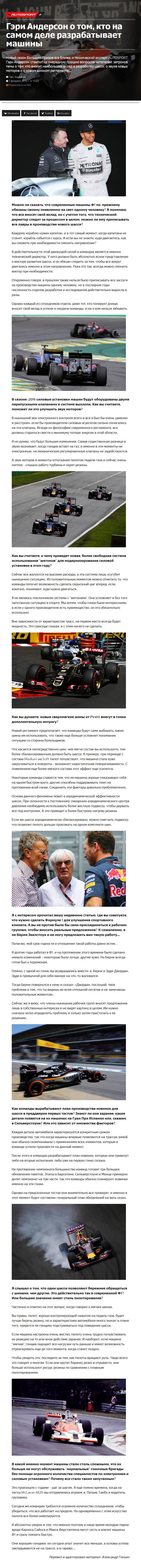 Новый сезон Больших Призов все ближе, и технический эксперт AUTOSPORT Гэри Андерсон ответил на очередную порцию вопросов читателей, затронув темы о том, кто вносит наибольших вклад в разработку шасси, о звуке новых моторов и о новом шинном регламенте…