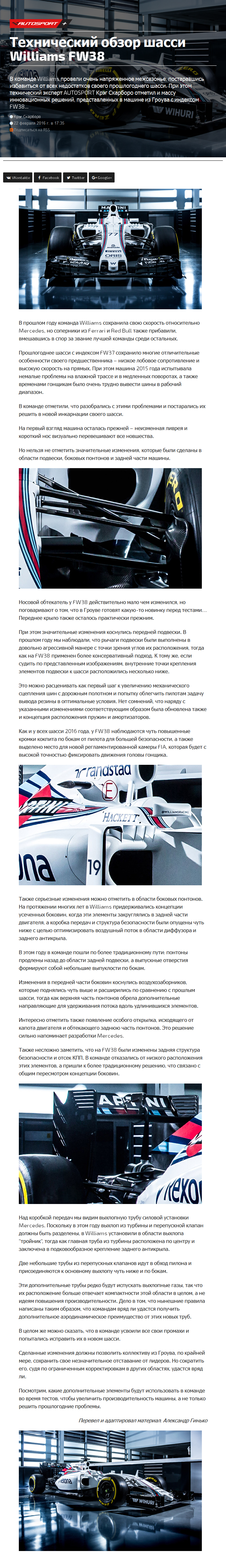 В команде Williams провели очень напряженное межсезонье, постаравшись избавиться от всех недостатков своего прошлогоднего шасси. При этом технический эксперт AUTOSPORT Крэг Скарборо отметил и массу инновационных решений, представленных в машине из Гроува с индексом FW38…
