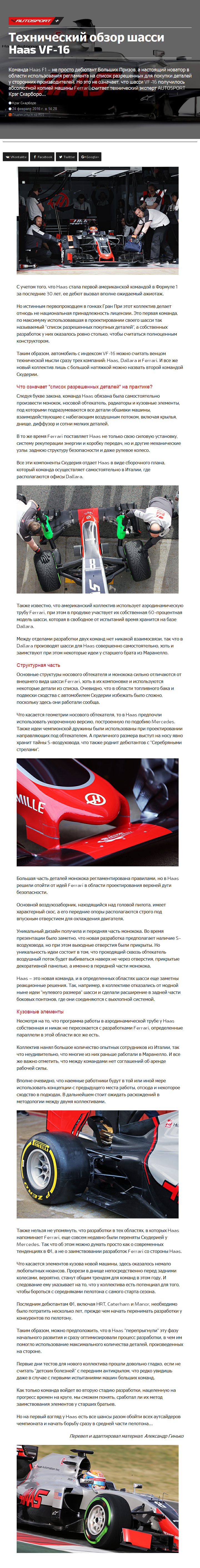 Команда Haas F1 – не просто дебютант Больших Призов, а настоящий новатор в области использования регламента на список разрешенных для покупки деталей у сторонних производителей. Но это не означает, что шасси VF-16 получилось абсолютной копией машины Ferrari, считает технический эксперт AUTOSPORT Крэг Скарборо…