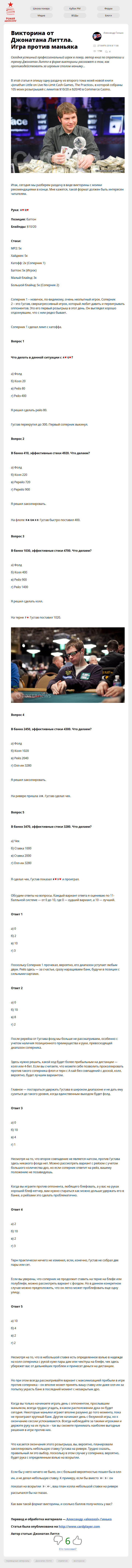 Сегодня успешный профессиональный игрок в покер, автор книг по стратегии и тренер Джонатан Литтл в форме викторины расскажет о том, как противодействовать за игровым столом маньяку…