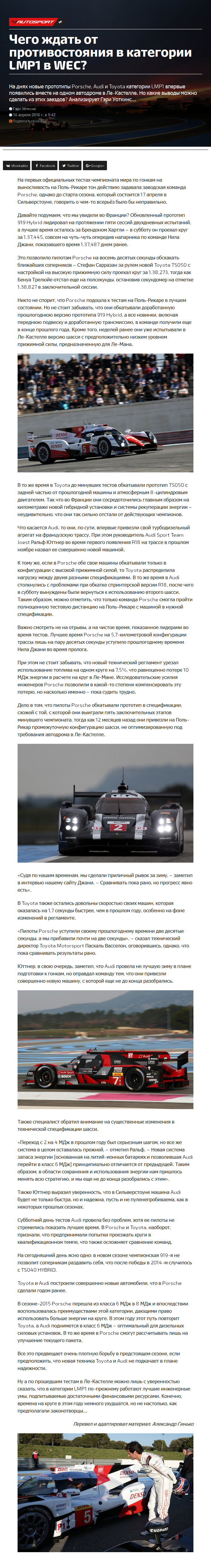 Чего ждать от противостояния в категории LMP1 в WEC?