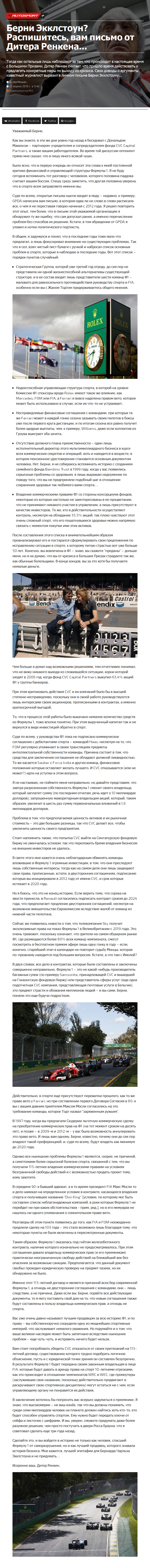 Тогда как остальные лишь наблюдают за тем, что происходит в настоящее время с Большими Призами, Дитер Ренкен считает, что пришло время действовать и предлагать конкретные меры по выходу из кризиса. Свои доводы и аргументы известный журналист выразил в личном письме Берни Экклстоуну…