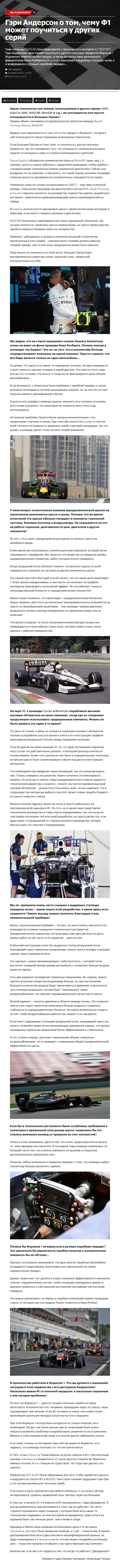 Гэри Андерсон о том, чему Ф1 может поучиться у других серий