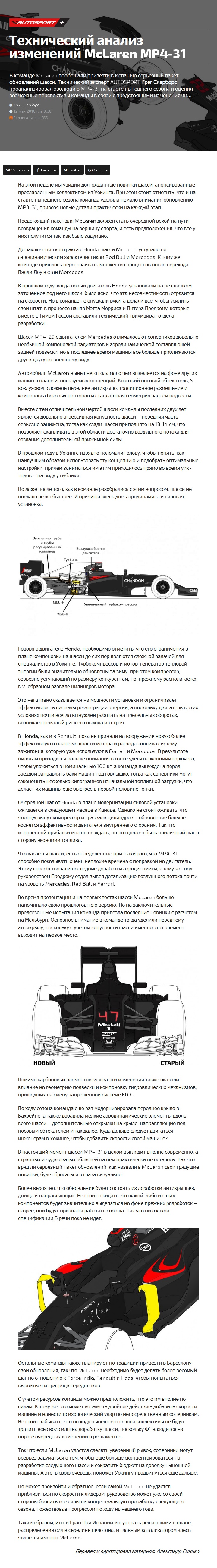 В команде McLaren пообещали привезти в Испанию серьезный пакет обновлений шасси. Технический эксперт AUTOSPORT Крэг Скарборо проанализировал эволюцию MP4-31 на старте нынешнего сезона и оценил возможные перспективы команды в связи с предстоящими изменениями…