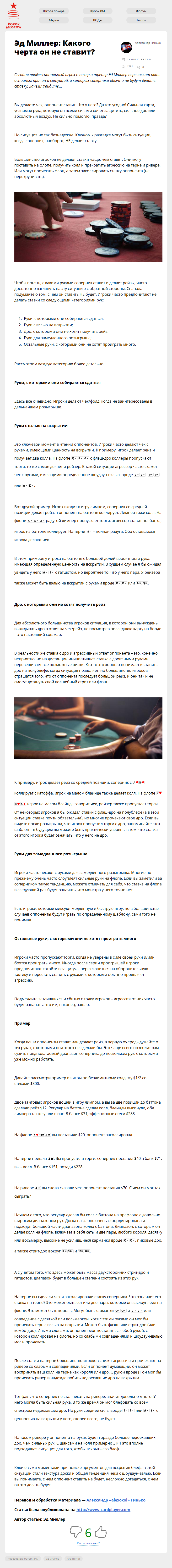 Сегодня профессиональный игрок в покер и тренер Эд Миллер перечислит пять основных причин и ситуаций, в которых соперники обычно не будут делать ставку. Зачем? Увидите…