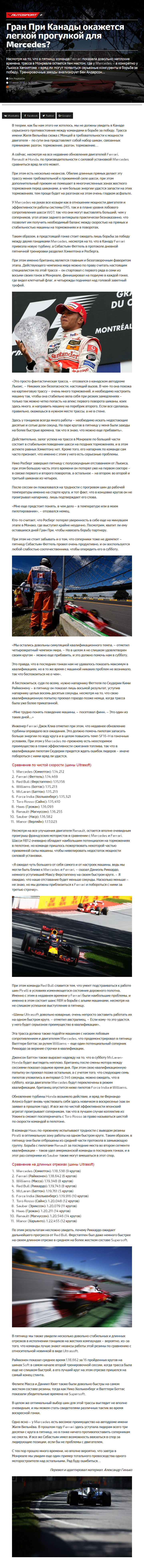 Несмотря на то, что в пятницу команда Ferrari показала довольно неплохие времена, трасса в Монреале остается тем местом, где у Mercedes – а конкретно у Льюиса Хэмилтона – вряд ли могут появиться серьезные конкуренты в борьбе за победу. Тренировочные заезды анализирует Бен Андерсон…