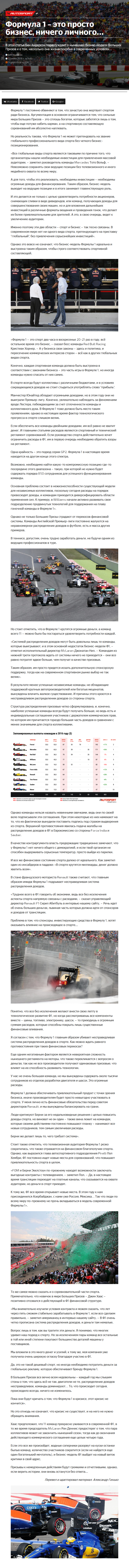Формула 1 – это просто бизнес, ничего личного… Опубликовано 23.06.201631.01.2019 Опубликовано по ссылке: В этой статье Бен Андерсон порассуждает о нынешней бизнес-модели Больших Призов и о том, насколько она жизнеспособна в современных условиях…