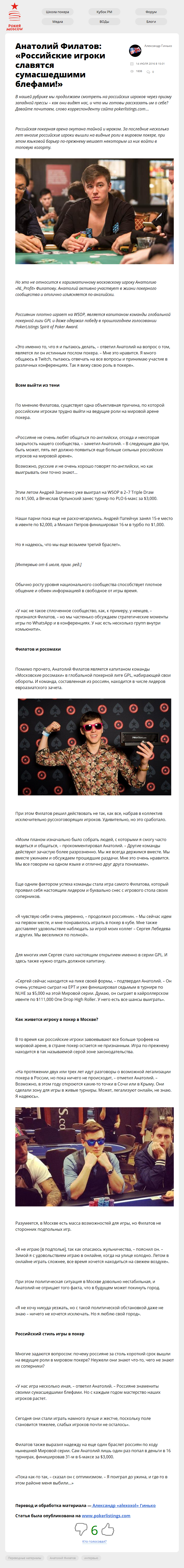 Анатолий Филатов: «Российские игроки славятся сумасшедшими блефами!»