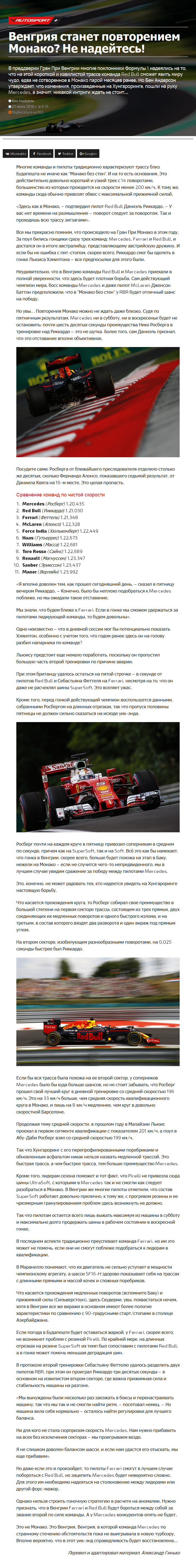 В преддверии Гран При Венгрии многие поклонники Формулы 1 надеялись на то, что на этой короткой и извилистой трассе команда Red Bull сможет явить миру чудо, едва не сотворенное в Монако парой месяцев ранее. Но Бен Андерсон утверждает, что изменения, произведенные на Хунгароринге, пошли на руку Mercedes, а значит, никакой интриги ждать не стоит…