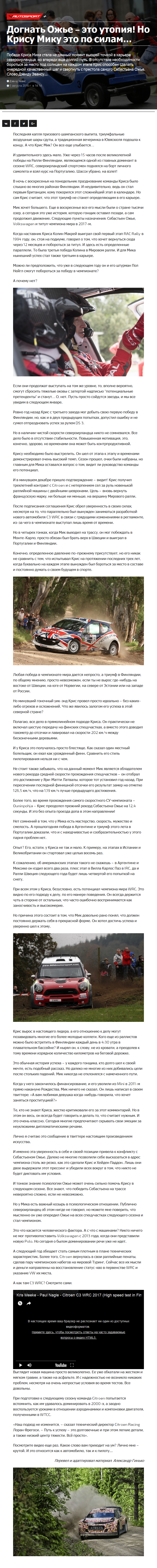 Победа Криса Мика стала на данный момент высшей точкой в карьере североирландца, но впереди еще долгий путь. В отсутствие необходимости бороться за место под солнцем на каждом этапе Крис способен сделать очередной качественный шаг и свергнуть с престола самого Себастьена Ожье. Слово Дэвиду Эвансу…