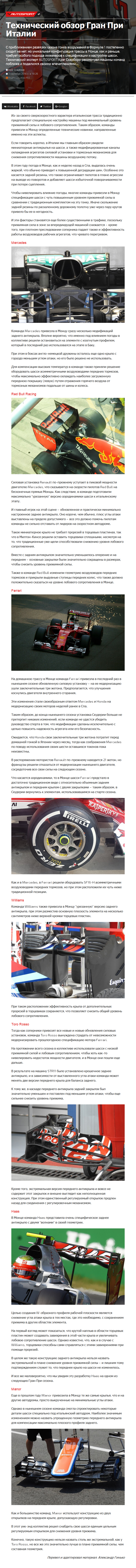 С приближением развязки сезона гонка вооружений в Формуле 1 постепенно сходит на нет, но уникальная конфигурация трассы в Монце, как и раньше, требует особого подхода инженеров к спецификации и настройке шасси. Технический эксперт AUTOSPORT Крэг Скарборо рассмотрел машины команд поближе и поделился своими впечатлениями…