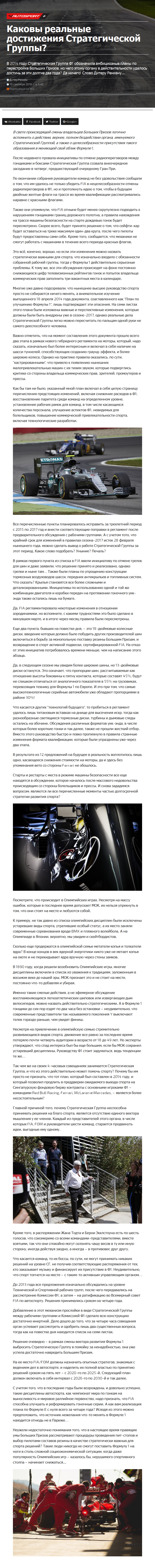 Каковы реальные достижения Стратегической Группы? Опубликовано 10.09.201631.01.2019 Опубликовано по ссылке: В 2014 году Стратегическая Группа Ф1 обозначила амбициозные планы по перестройке Больших Призов, но чего этому органу в действительности удалось достичь за эти долгие два года? Да ничего! Слово Дитеру Ренкену…