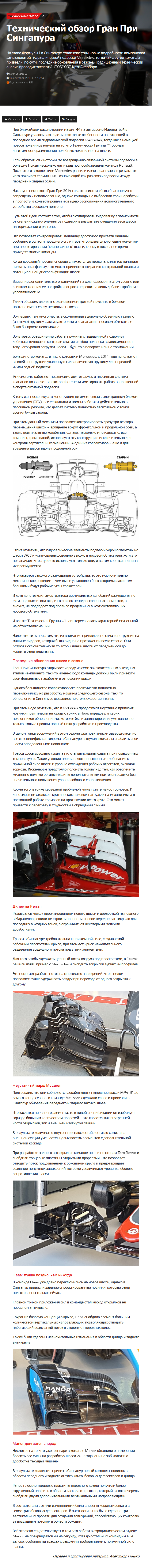 На этапе Формулы 1 в Сингапуре стали известны новые подробности компоновки замысловатой гидравлической подвески Mercedes, тогда как другие команды привезли, по сути, последние обновления в сезоне. Традиционный технический анализ проводит эксперт AUTOSPORT Крэг Скарборо…