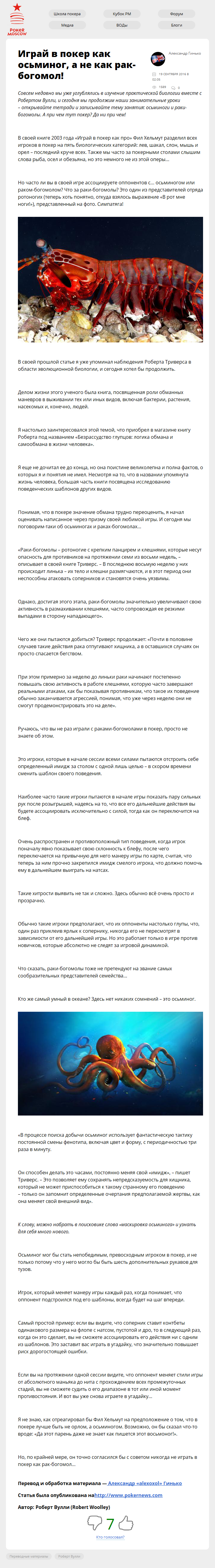 Совсем недавно мы уже углублялись в изучение практической биологии вместе с Робертом Вулли, и сегодня мы продолжим наши занимательные уроки – открывайте тетради и записывайте тему занятия: осьминоги и раки-богомолы. А при чем тут покер? Да ни при чем!