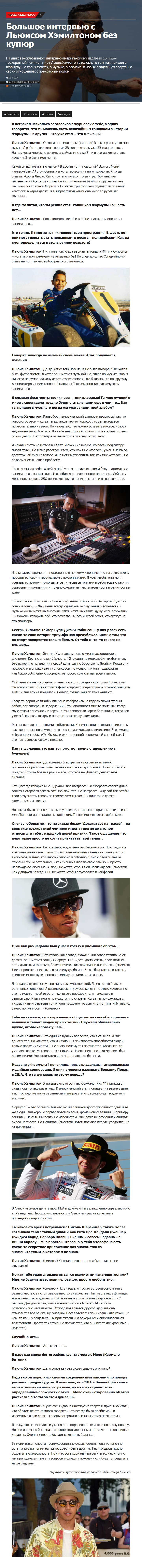 Большое интервью с Льюисом Хэмилтоном без купюр