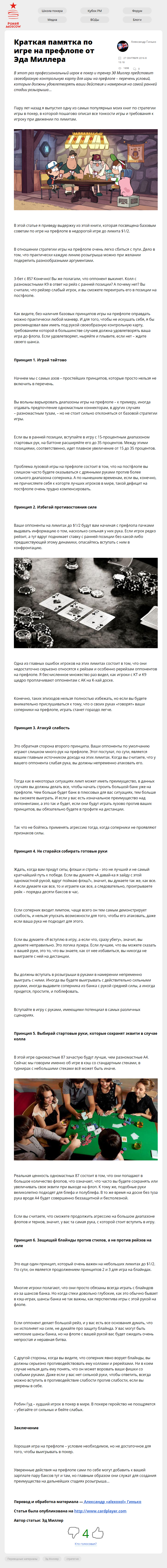 В этот раз профессиональный игрок в покер и тренер Эд Миллер представит своеобразную контрольную карту для игры на префлопе – перечень условий, которым должны удовлетворять ваши действия и намерения на самой ранней стадии розыгрыша…
