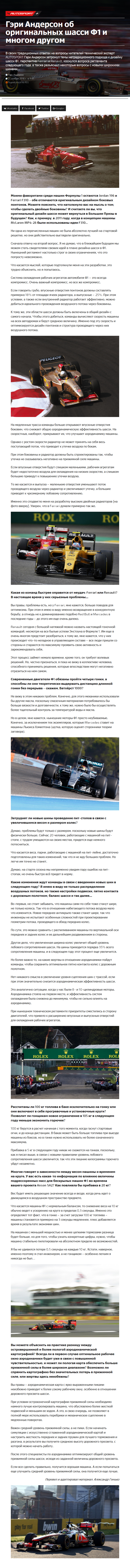 В своих традиционных ответах на вопросы читателей технический эксперт AUTOSPORT Гэри Андерсон затронул темы нетрадиционного подхода к дизайну шасси Ф1, перспектив Ferrari и Renault, коснулся вопроса регламента следующего года, а также разъяснил некоторые вопросы с новыми широкими шинами…