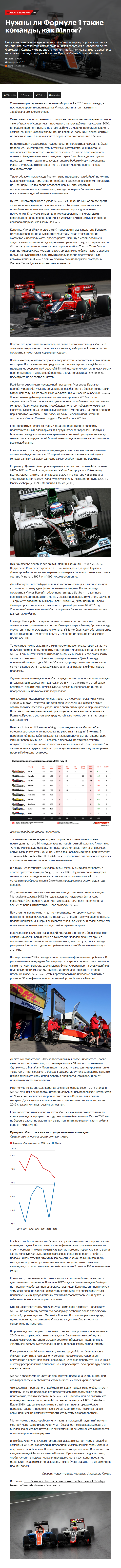 На бумаге потеря команды, едва ли способной по праву бороться за очки в чемпионате, выглядит не самым выдающимся событием в новостной ленте Формулы 1. Однако уход из спорта коллектива Manor может иметь целый ряд негативных последствий для Больших Призов. Слово Скотту Митчеллу…
