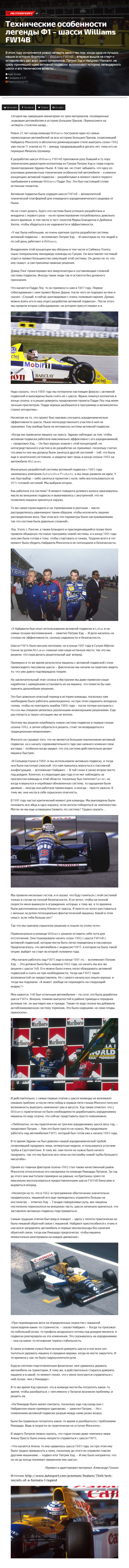 В этом году исполняется ровно четверть века с тех пор, когда одна из лучших машин в истории Формулы 1 – Williams FW14B – впервые вышла на старт и оставила не у дел всех своих соперников. Патрик Хэд и Найджел Мэнселл, не сразу принявший идею активной подвески, вспоминают историю легендарного шасси и его технические аспекты…