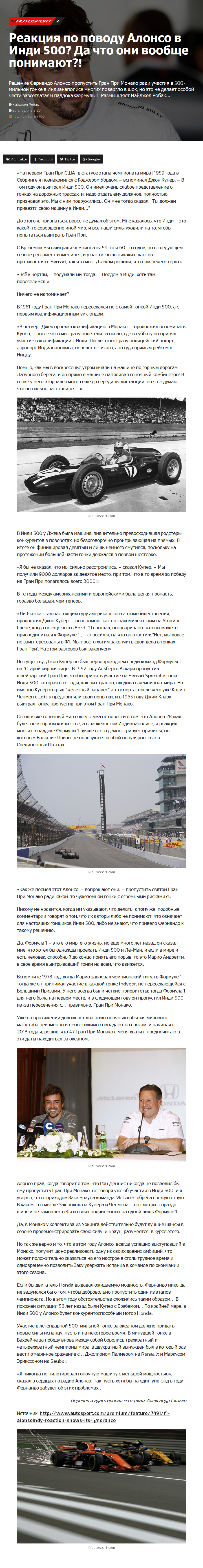 Реакция по поводу Алонсо в Инди 500? Да что они вообще понимают?!