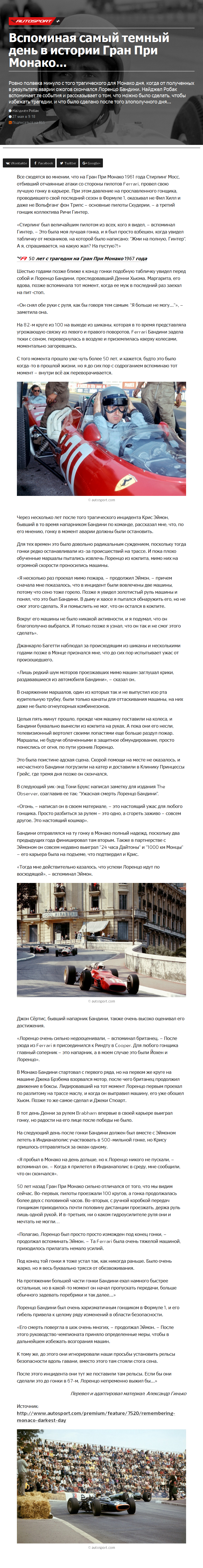 Ровно полвека минуло с того трагического для Монако дня, когда от полученных в результате аварии ожогов скончался Лоренцо Бандини. Найджел Робак вспоминает те события и рассказывает о том, что можно было сделать, чтобы избежать трагедии, и что было сделано после того злополучного дня…