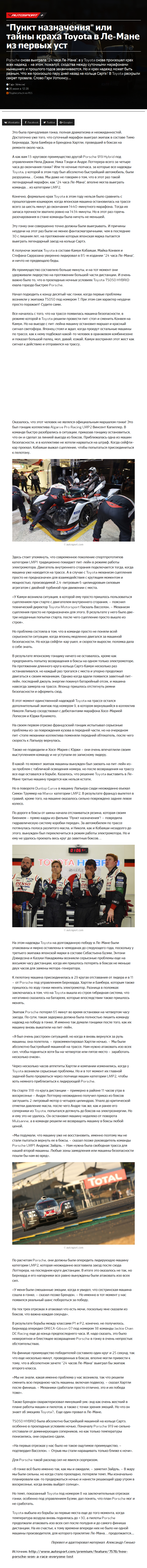 Porsche снова выиграла "24 часа Ле-Мана", а у Toyota снова произошел крах всех надежд – на этом, пожалуй, сходства между суточными марафонами нынешнего и прошлого годов заканчиваются. Но и крах надежд может быть разным. Что же произошло пару дней назад на кольце Сартэ? В Toyota раскрыли секрет провала. Слово Гэри Уоткинсу…