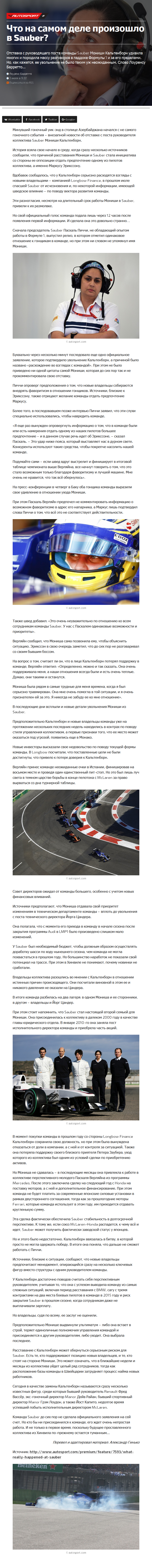 Отставка с руководящего поста команды Sauber Мониши Кальтенборн удивила многих и породила массу разговоров в паддоке Формулы 1 и за его пределами. Но, как кажется, ее увольнение не было таким уж неожиданным. Слово Лоуренсу Барретто…