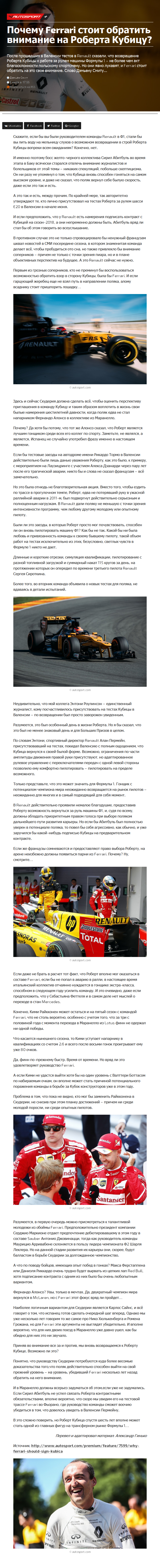 После прошедших в Валенсии тестов в Renault сказали, что возвращение Роберта Кубицы к работе за рулем машины Формулы 1 – не более чем акт благосклонности польскому спортсмену. Но они явно лукавят, и Ferrari стоит обратить на это свое внимание. Слово Дэмьену Смиту…