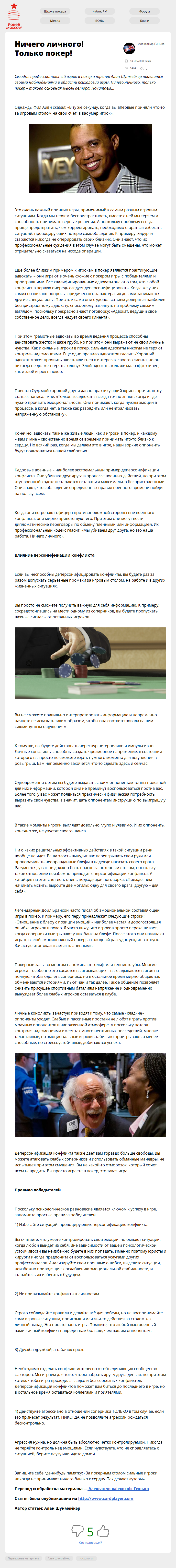 Сегодня профессиональный игрок в покер и тренер Алан Шунмейкер поделится своими наблюдениями в области психологии игры. Ничего личного, только покер – такова основная мысль автора. Почитаем…