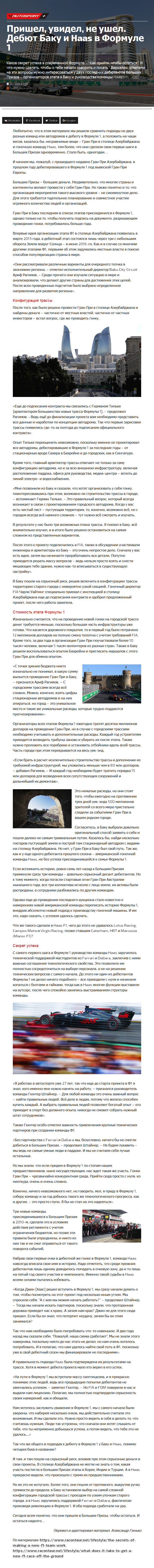 Каков секрет успеха в современной Формуле 1? Как прийти, чтобы остаться? И что нужно сделать, чтобы о тебе начали говорить и писать? Вероятно, ответами на эти вопросы нужно интересоваться у двух последних дебютантов Больших Призов – организаторов этапа в Баку и руководства команды Haas…