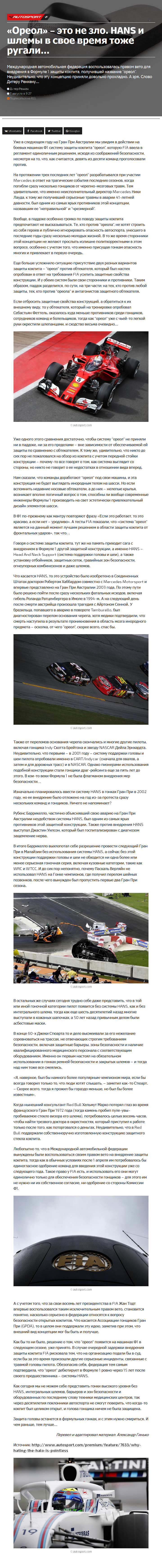 Международная автомобильная федерация воспользовалась правом вето для внедрения в Формуле 1 защиты кокпита, получившей название "ореол". Неудивительно, что эту концепцию приняли довольно прохладно. А зря. Слово Дитеру Ренкену…