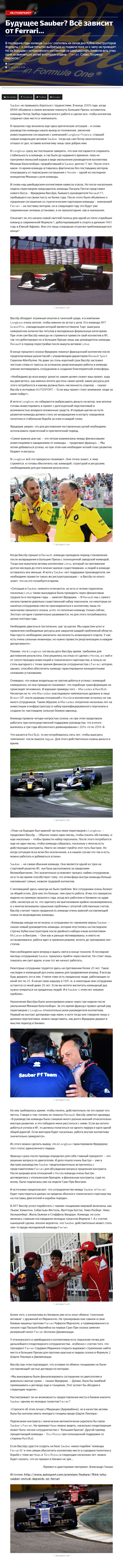 В последние годы команда Sauber скатилась на самое дно Кубка конструкторов Формулы 1, и любые попытки выбраться из подвала пока ни к чему не приводят. Но на будущее у исторического коллектива из швейцарского Хинвила есть план, одна из важнейших ролей в котором отдана… Ferrari. Слово Лоуренсу Барретто…
