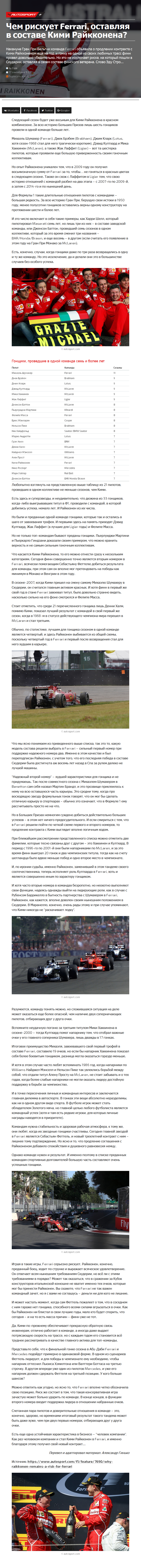 Накануне Гран При Бельгии команда Ferrari объявила о продлении контракта с Кими Райкконеном еще на год, и гонку на одной из своих любимых трасс финн провел довольно убедительно. Но это не исключает риска, на который пошли в Скудерии, оставляя в своем составе финского ветерана. Слово Эду Стро…
