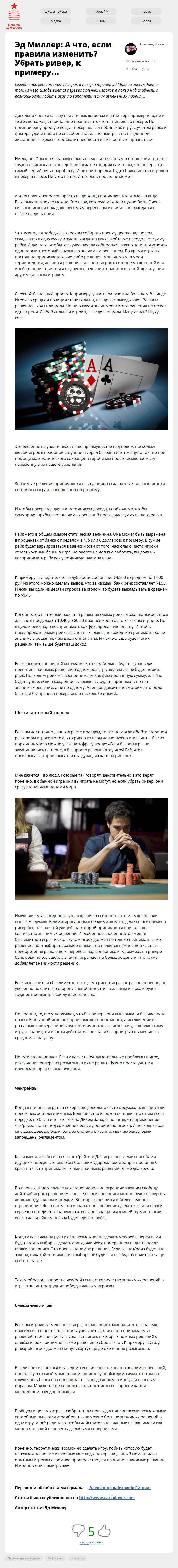 Сегодня профессиональный игрок в покер и тренер Эд Миллер рассуждает о том, из чего складывается перевес сильных игроков в покер над слабыми, о возможности побить игру и о гипотетических изменениях правил…