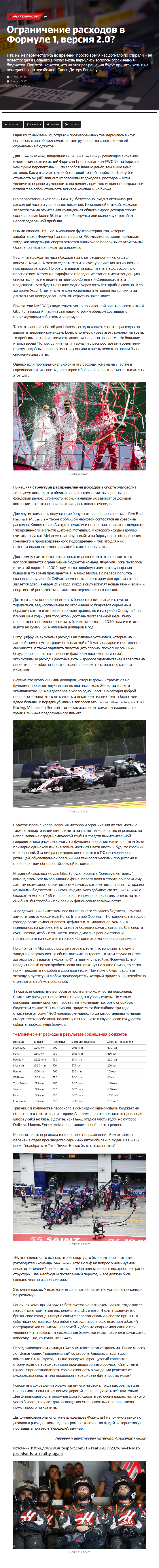 Нет, мы не переместились во времени, просто время нас догнало по спирали – на повестку дня в Больших Призах вновь вернулись вопросы ограничения бюджетов. При этом кажется, что на этот раз решения будут приняты хоть и не немедленно, но неизбежно. Слово Дитеру Ренкену…