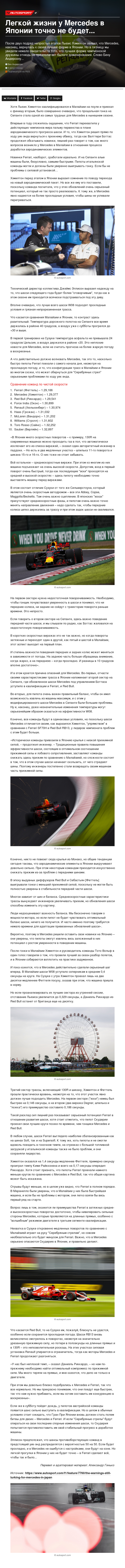 После двух подряд непростых этапов Льюис Хэмилтон заявил, что Mercedes, наконец, вернулась к своей лучшей форме в Японии. Но в пятницу мы увидели немало свидетельств того, что лучшая форма чемпионской дружины отнюдь не предполагает былого доминирования. Слово Бену Андерсону…