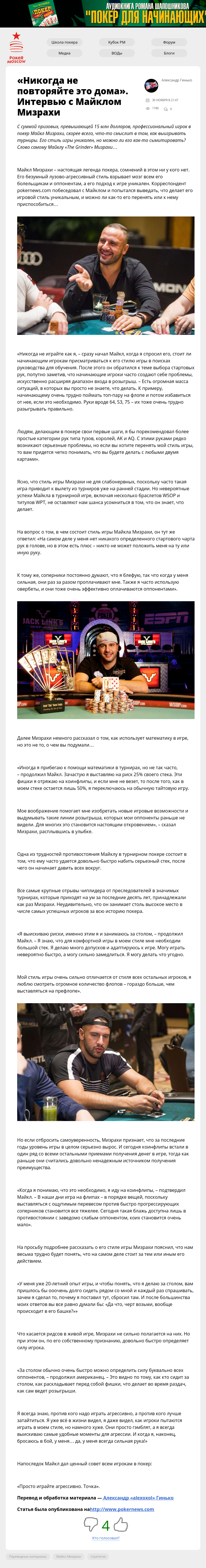 С суммой призовых, превышающей 15 млн долларов, профессиональный игрок в покер Майкл Мизрахи, скорее всего, что-то смыслит в том, как выигрывать турниры. Его стиль игры уникален, но можно ли его как-то сымитировать? Слово самому Майклу «The Grinder» Мизрахи…