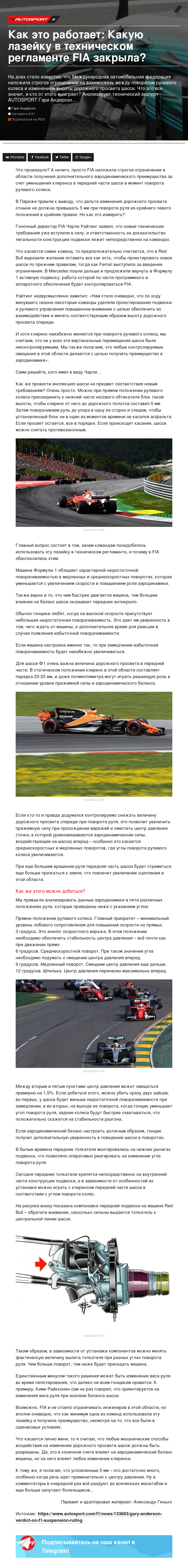 На днях стало известно, что Международная автомобильная федерация наложила строгое ограничение на взаимосвязь между поворотом рулевого колеса и изменением высоты дорожного просвета шасси. Что это все значит, и кто от этого выиграет? Анализирует технический эксперт AUTOSPORT Гэри Андерсон…
