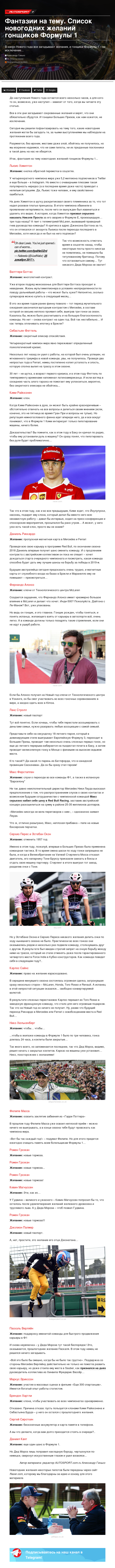 Фантазии на тему. Список новогодних желаний гонщиков Формулы 1 Опубликовано 31.12.2017 Опубликовано по ссылке: В канун Нового года все загадывают желания, и гонщики Формулы 1 – не исключение…