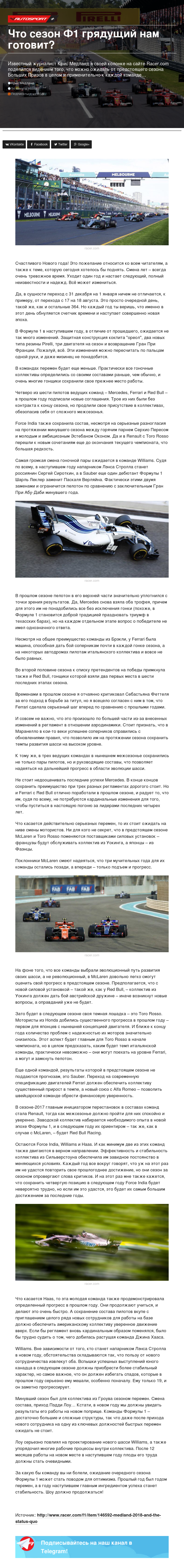 Известный журналист Крис Медланд в своей колонке на сайте Racer.com поделился видением того, что можно ожидать от предстоящего сезона Больших Призов в целом и применительно к каждой команде…