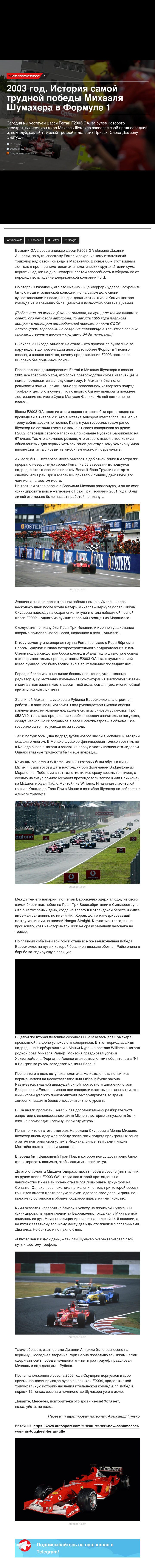 Сегодня мы чествуем шасси Ferrari F2003-GA, за рулем которого семикратный чемпион мира Михаэль Шумахер завоевал свой предпоследний и, пожалуй, самый тяжелый трофей в Больших Призах. Слово Дэмиену Смиту…