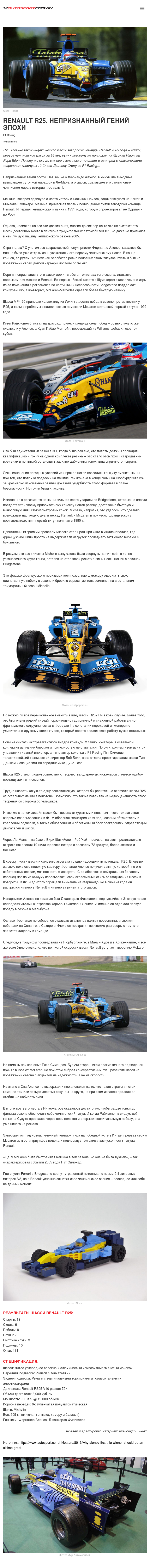R25. Именно такой индекс носило шасси заводской команды Renault 2005 года – кстати, первое чемпионское шасси за 14 лет, руку к которому не приложил ни Эдриан Ньюи, ни Рори Бёрн. Почему же его до сих пор очень неохотно ставят в один ряд с классическими творениями Формулы 1? Слово Дэмьену Смиту из F1 Racing…