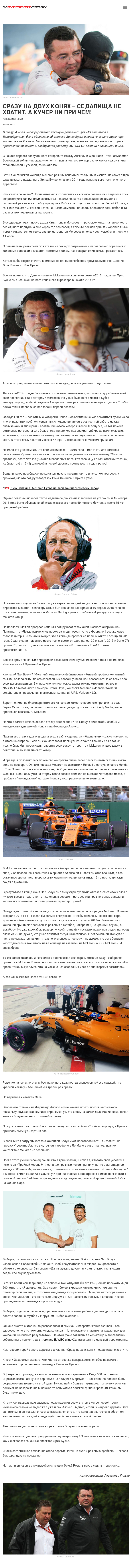 В среду, 4 июля, непосредственно накануне домашнего для McLaren этапа в Великобритании было объявлено об отставке Эрика Булье с поста гоночного директора коллектива из Уокинга. Так ли виноват руководитель, и что на самом деле происходит в прославленной команде, разбирается редактор AUTOSPORT.com.ru Александр Гинько…