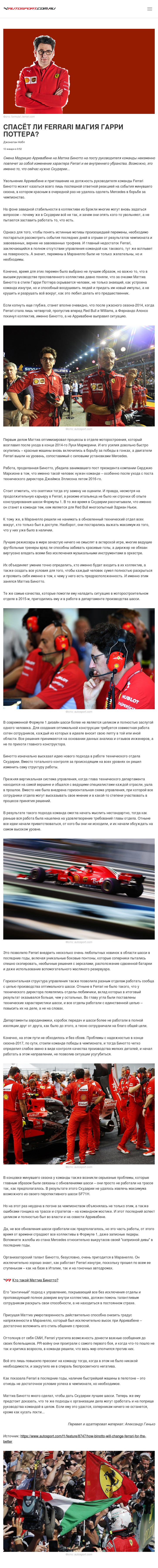 Смена Маурицио Арривабене на Маттиа Бинотто на посту руководителя команды неизменно повлечет за собой изменение характера Ferrari и ее внутреннего убранства. Возможно, это именно то, что сейчас нужно Скудерии…