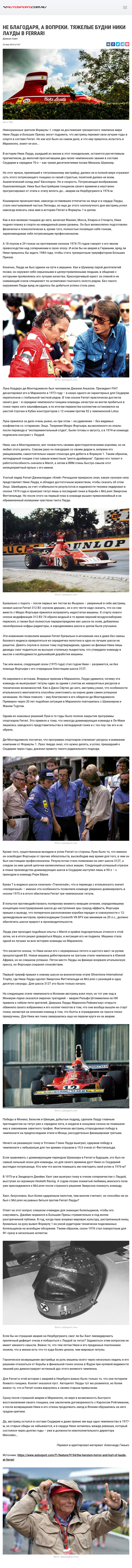 Неискушенные зрители Формулы 1, глядя на достижения трехкратного чемпиона мира Ники Лауды в Больших Призах, могут подумать, что австриец пережил свои лучшие годы в спорте в составе Ferrari. Но как всё было на самом деле, и что ему пришлось испытать в Маранелло, знают не все…