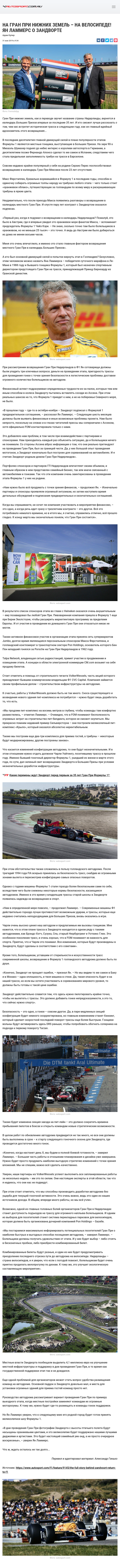 Гран При нижних земель, как в переводе звучит название страны Нидерланды, вернется в календарь Больших Призов впервые за последние 35 лет. И кто сможет лучше рассказать о том, чем нас встретит историческая трасса в следующем году, как не главный идейный вдохновитель этого возвращения…