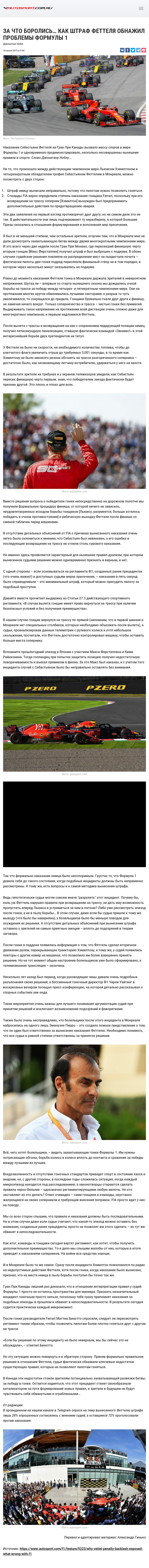Наказание Себастьяна Феттеля на Гран При Канады вызвало массу споров в мире Формулы 1 и одновременно продемонстрировало, насколько несовершенны нынешние правила в спорте. Слово Джонатану Ноблу…